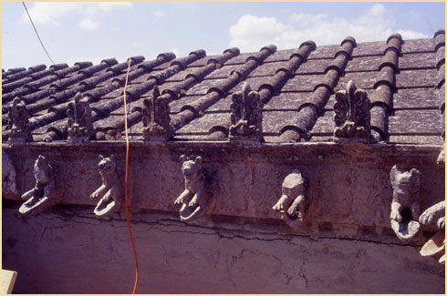 Gocciolatoio sud-est. Vista di fronte prima del restauro. [ICR]